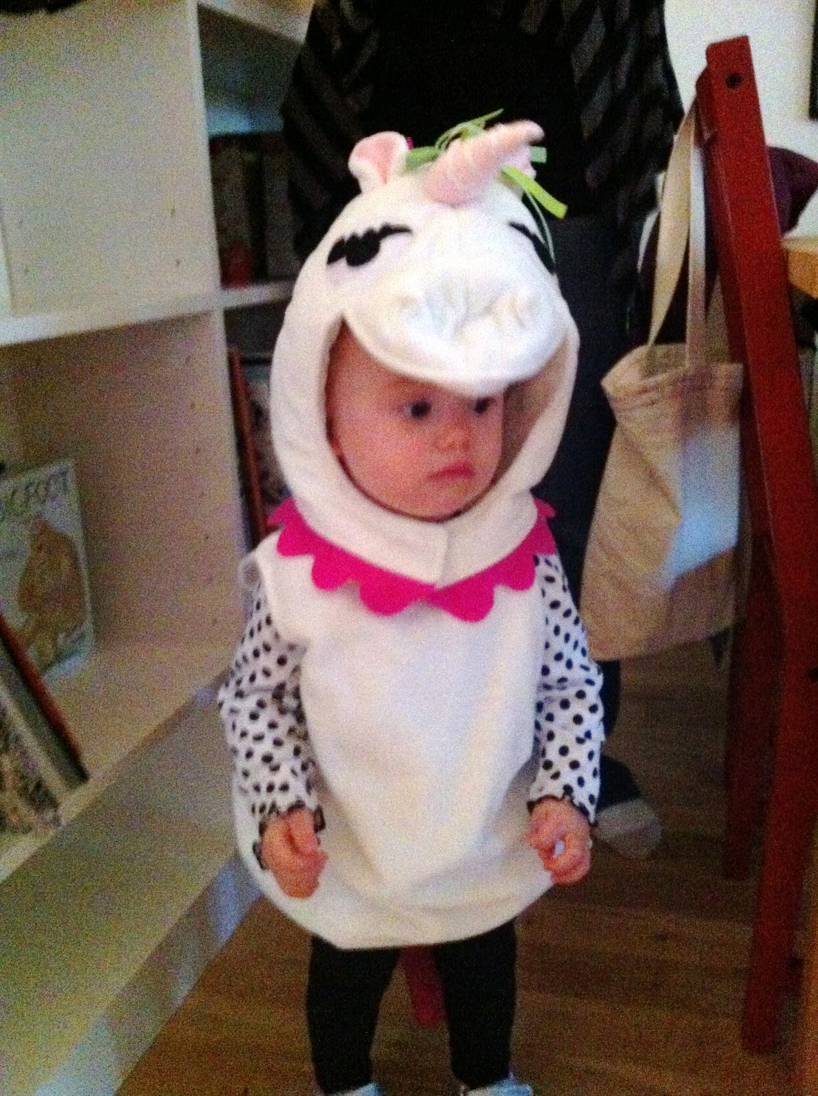 It's fun celebrating with a toddler who seems to understand the concept of dress-up. I've been able to suit her up as both Pepples Flinstone and a fish without complaint.
