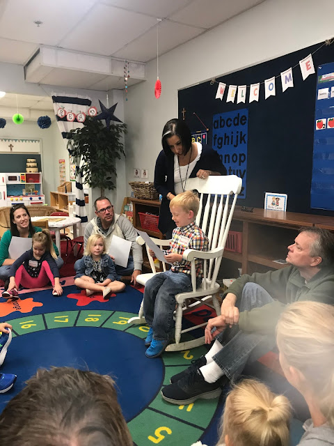 George has been eager for Mrs Deily's class since Abigail had her two years ago and was thrilled to finally be in PreK. Being as it's his third year in the preschool classroom he was incredibly comfortable and ready to go within minutes. He actually was dissapoinment when he found out his first day was slow start and that I would be there (sorry bud!)